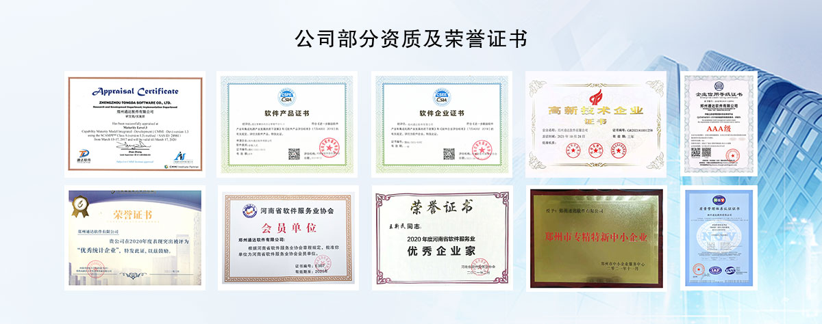 公司介紹COMPANY INTRODUCTION鄭州通達(dá)軟件有限公司(簡稱:通達(dá)軟件 / 掛牌代碼:669353)坐落于“河南省國家大學(xué)科技園(東區(qū))”,鄭州通達(dá)軟件有限公司是一家專業(yè)從事軟件研發(fā)、生產(chǎn)、銷售、服務(wù)為一體的國家高新技術(shù)企業(yè),通過軟件CMMI3級認(rèn)證、國家科技型中小企業(yè)、雙軟企業(yè)、AAA企業(yè)等資質(zhì)認(rèn)證,公司與河南省教育廳、河南大學(xué)、河南科技大學(xué)、河南農(nóng)業(yè)大學(xué)、河南師范大學(xué)、華北水利水電大學(xué)等學(xué)校在技術(shù)研發(fā)及人才儲備進(jìn)行戰(zhàn)略合作。
