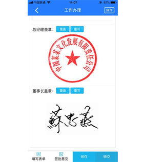 ◆支持在流程中心、應(yīng)用中心、工作流模塊蓋章和手寫簽批。