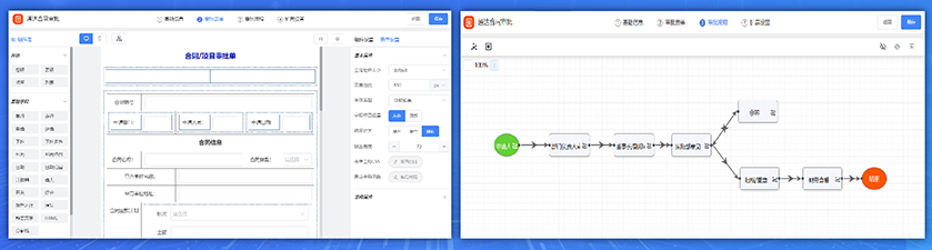 新一代流程數據中臺,表單流程一體化配置,零代碼開發,圖形化視圖,拍一拍或拖拉拽即可生成表單控件,一次配置PC和手機多端自適應,配置完成保存自動檢測各項數據,PC端完美蓋章,移動端掃一掃即可手寫簽批