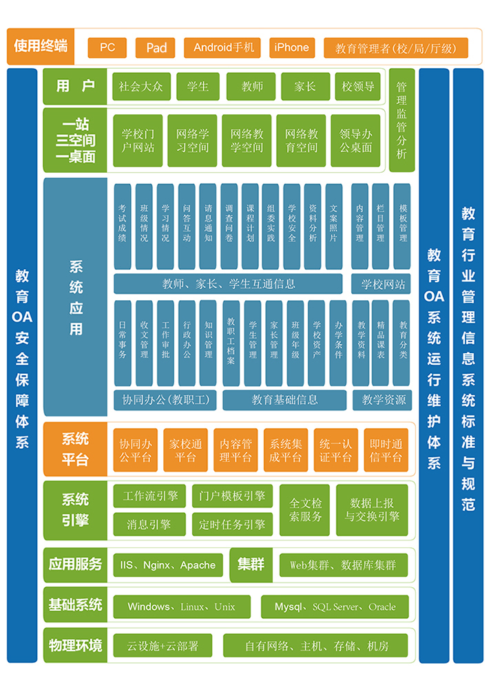 | 教育政務(wù)部分 | 日常事務(wù) | 電子郵件、消息管理、手機短信、公告通知、學校新聞、投票、日程安排、工作日志、通訊簿、個人文件柜、我的門戶、門戶內(nèi)容管理、控制面板 | |
