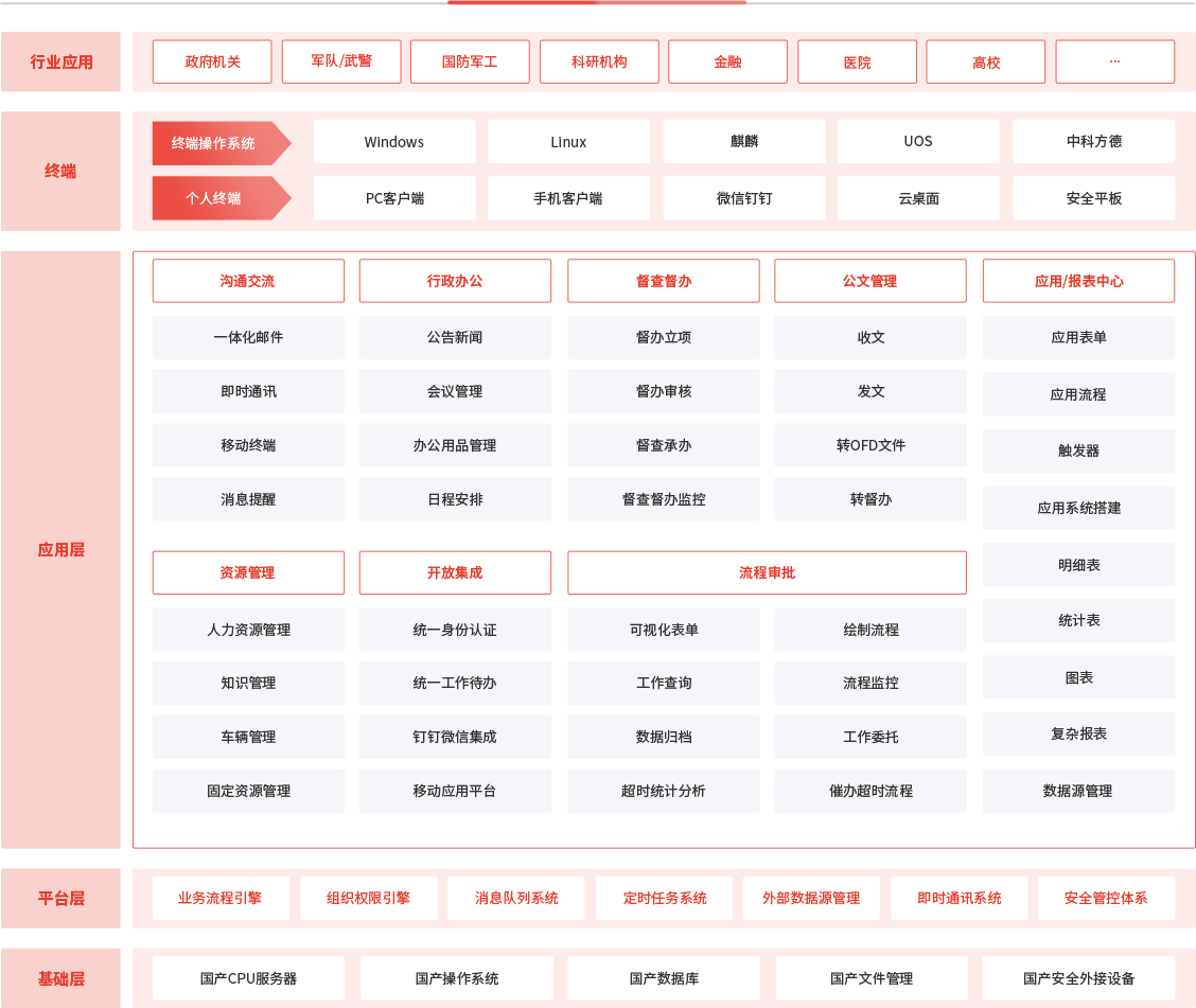 專注于黨政機關(guān)、國企、事業(yè)單位辦公要求,全面覆蓋各種協(xié)同辦公應(yīng)用場景,賦能數(shù)字化辦公