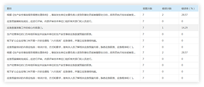 題目答題錯誤率分析,根據成績結果重點培訓學習